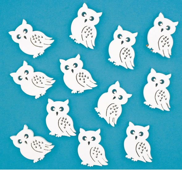 Dřevěné výseky 3cm - bílá nalepovací sova 12ks