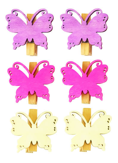Dřevění motýli 4cm s kolíčkem - fialkový mix 6ks