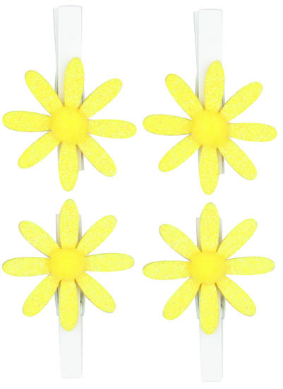 Kolíčky 5cm s kytičkou - žlutá s glitry 4ks