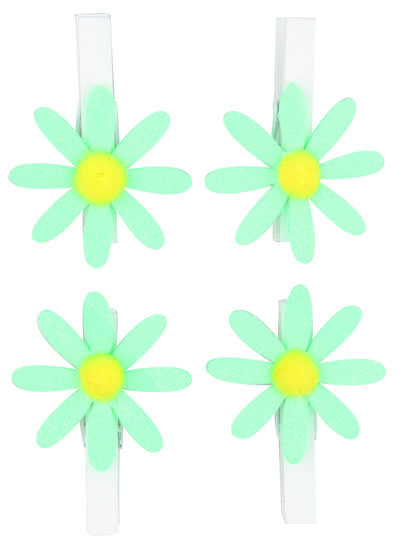 Kolíčky 5cm s kytičkou - tyrkysové s glitry 4ks