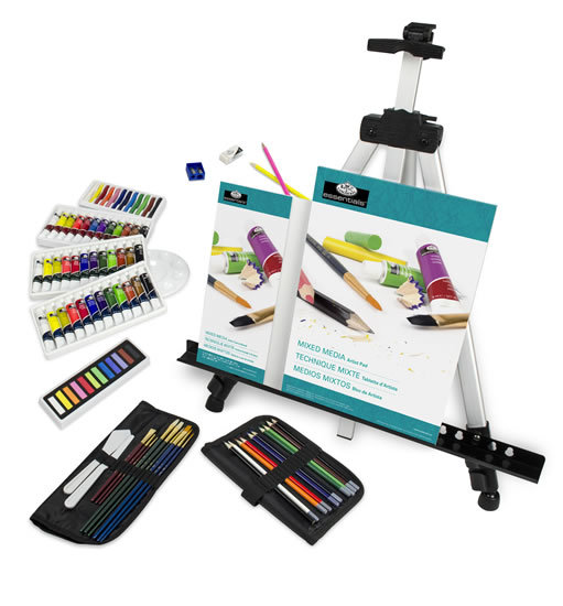 Obsah balení: 12 ks akrylových barev v tubě (12ml)12 ks olejových barev v tubě (12ml) 12 ks avarelových barev v tubě (12ml) 12 ks suchý pastel 12 ks olejový pastel 12 akvarelových pastelek 3 ks štětců se zlatými, taklonovými štětinkami 3 ks štětců s bílými vlasy 3 ks štětců s přírodními štětinami 3 ks umělohmotné špachtle 2 ks nataženého plátna 2 ks grafických tužek 1 ks pouzdro na štětce 1 ks pouzdro na tužky 1 ks 10-místní palety 1 ks struhadla 1 ks gumy 1 ks blok pro akvarel 1 ks hliníkového stojanu 1 ks cestovatelské tašky