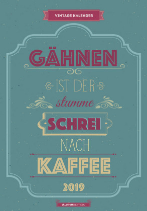 - Premiumqualität: 150g/m 2 Bilderdruckpapier, extrastarke 1.000g/m 2 Rückwand - Deutschsprachiges Kalendarium - Feiertage (DE/AT/CH) - Mit Platz für Notizen - Auf den Rückseiten u. a. Jahresübersichten 2019/2020, 100-jähriger Kalender, Ferientermine (DE/AT/CH) - Mit Wire-O-Bindung - Insgesamt sind bei Alpha Edition 40 Bildkalender mit den unterschiedlichsten Motiven im Format 24 x 34 cm erhältlich Ein wunderbarer Wandkalender im Format 24 x 34 cm für alle Freunde des Vintage-Stils. Dieser farbenfrohe und fröhliche Kalender begleitet Sie durch das Jahr mit flotten Sprüchen und alternativen Weisheiten. Zudem liefert das übersichtliche Kalendarium unter den Bildmotiven Monat für Monat Zusatzinformationen. Ein Muss für jeden Vintage-Fan!