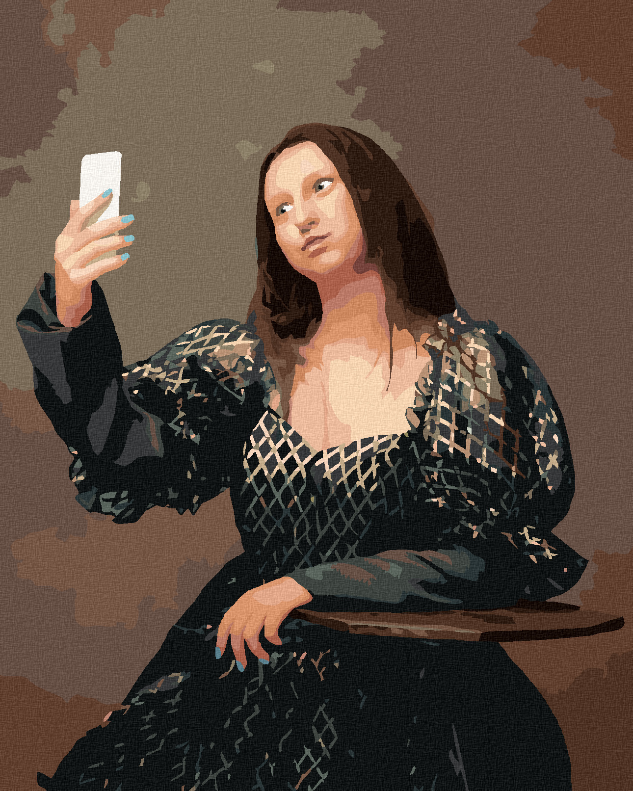 Malování podle čísel - MONA LISA SELFIE - 80x100 cm, vypnuté plátno na rám