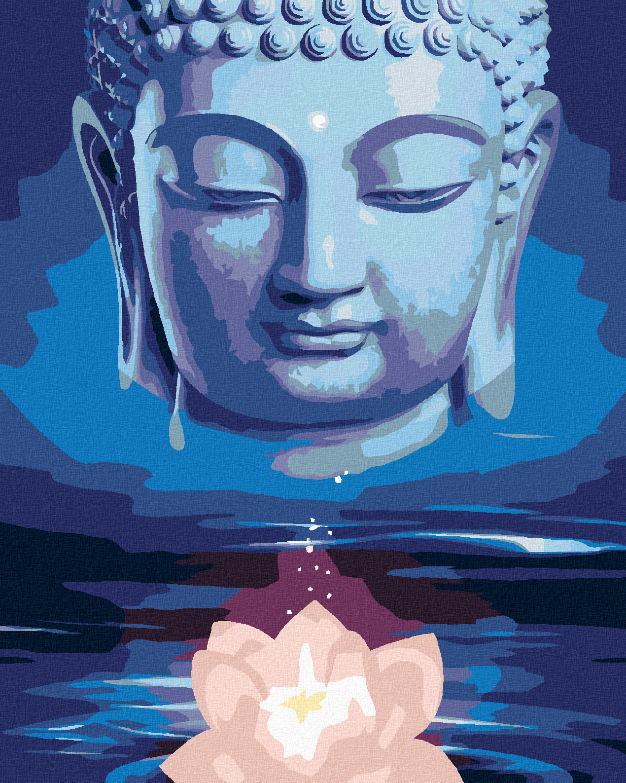 Malování podle čísel - MODRÝ BUDDHA S LOTOSEM - 80x100 cm, bez rámu a bez vypnutí plátna