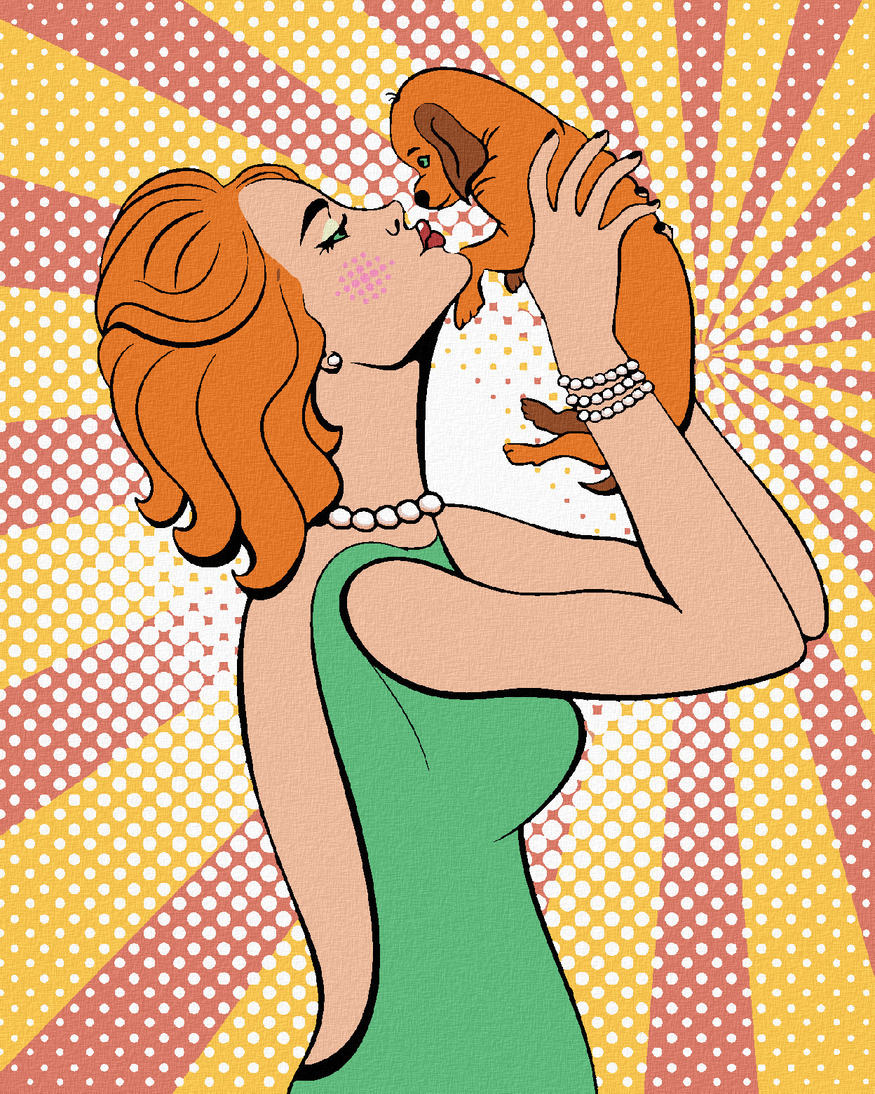Malování podle čísel - POP-ART ŽENA SE ŠTĚNÁTKEM - 40x50 cm, vypnuté plátno na rám