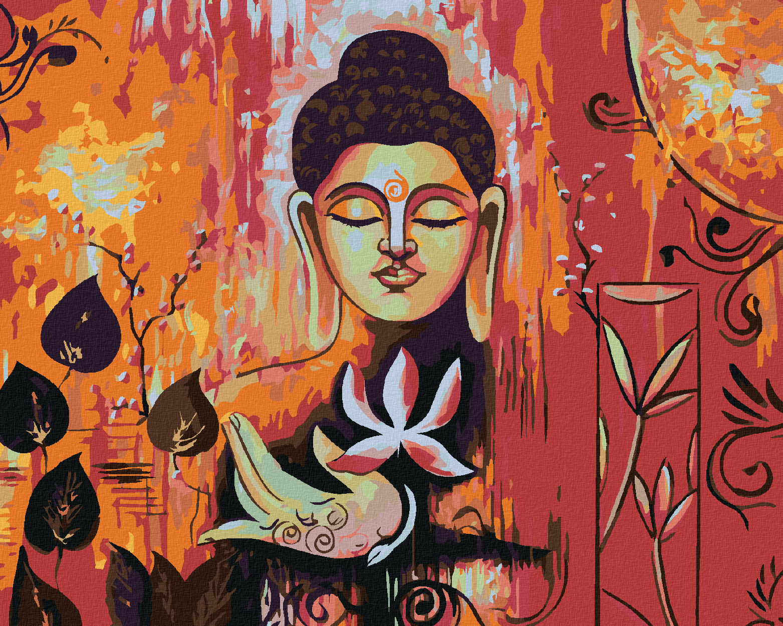 Malování podle čísel - BUDDHA NA ČERVENÉM POZADÍ II - 80x100 cm, vypnuté plátno na rám