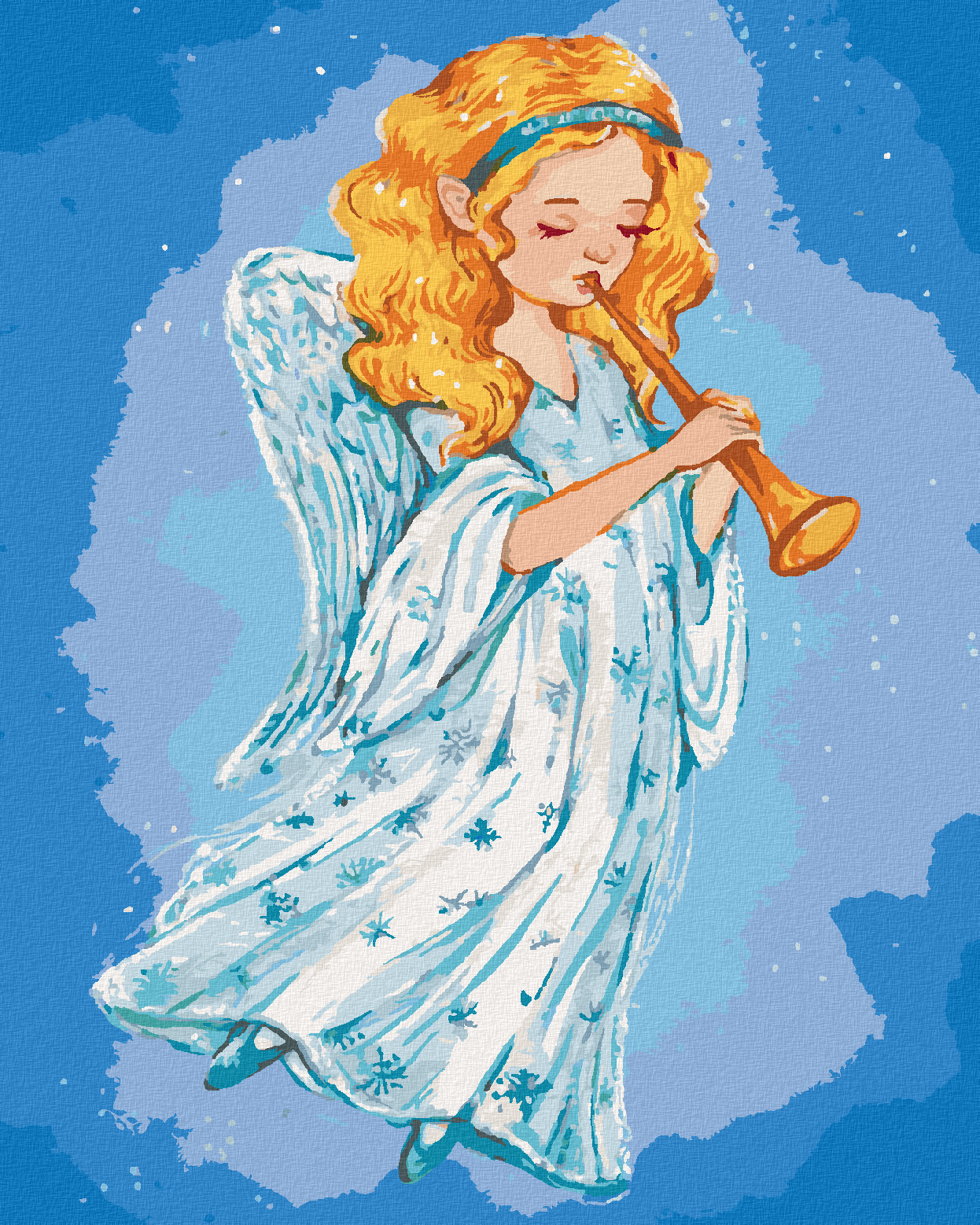 Malování podle čísel - VÁNOČNI ANDĚL HRAJE NA TRUBKU - 80x100 cm, bez rámu a bez vypnutí plátna