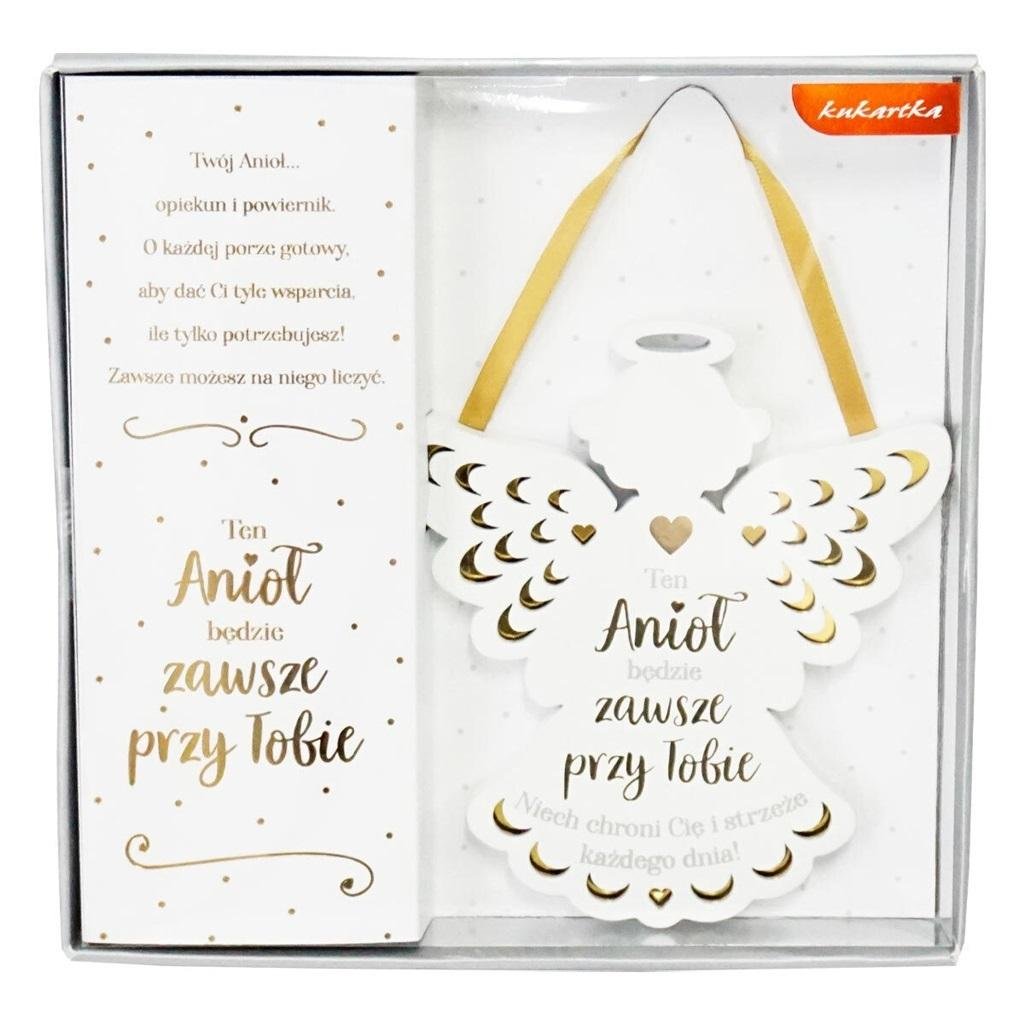 Zawieszka premium w formie Aniołka ZOP-011 to niezapomniany pomysł na prezent. Wykonana z solidnej płyty MDF z wyżłobionymi lustrzanymi zdobieniami oraz napisem w formie krótkiej sentencji. Na tylnej ściance aniołka jest tasiemka do zawieszenia na ścianie. Zawieszka zapakowana jest eleganckie i trwałe pudełeczko z życzeniami w środku, dodatkowo zabezpieczone folią pcv. Cechy szczególne: typ: zawieszka do powieszenia wielkość orientacyjna: wysokość: 14 cm, szerokość: 12,5cm (skrzydła), grubość: 7mm zdobienie: wzory wyżłobione w drewnie z lustrzaną folią, kolorowy napis okazja: ogólna