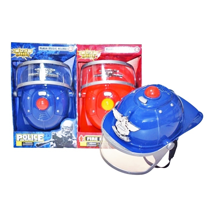 Přilba zvuková, s možností nastavení obvodu hlavy cca 45 - 50 cm. Po stisknutí tlačítka na přilbě zní zvuk sirény a svítí červeně modré světlo na přilbě. V nabídce je ve dvou barvách, policejní a hasičská.