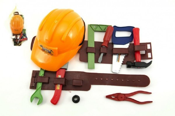 Sada nářadí s opaskem+helma/přilba plast 10ks 64cm v síťce
