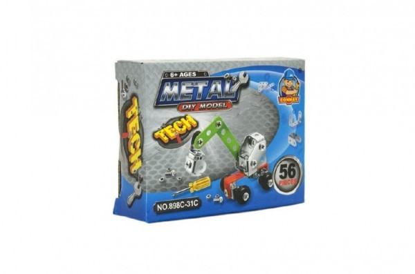Stavebnice kovová stavební stroje 4 druhy v krabičce 12x9x3cm