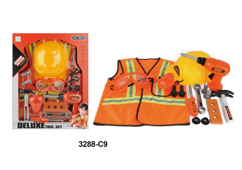 Sada nářadí pro malé kutily. Součástí balení je 42 kusů a dokonce ochranná, stavební helma, ochranné brýle, ochranná vesta a respirátor. Výrobek je vhodný pro děti od 3 let.