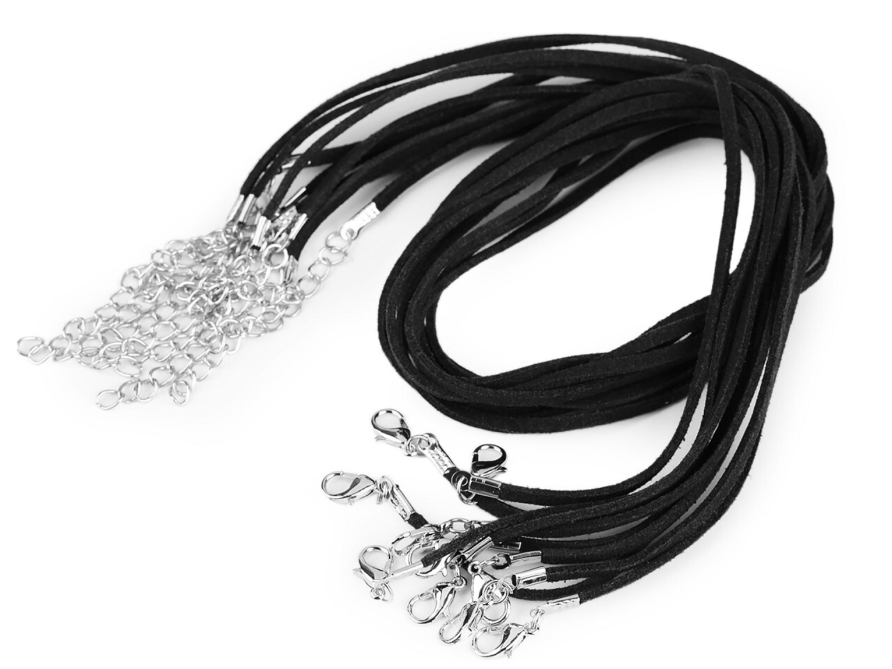Šnůrka se zapínáním imitace kůže 0,3x45 cm - 10 ks - 1 černá