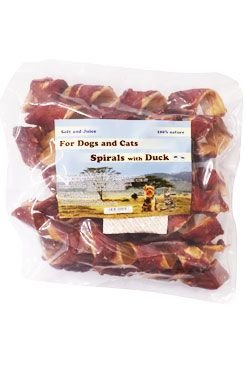 Spirály z vepřové kůže obalená kachním masem - žvýkací pochoutka pro psy.