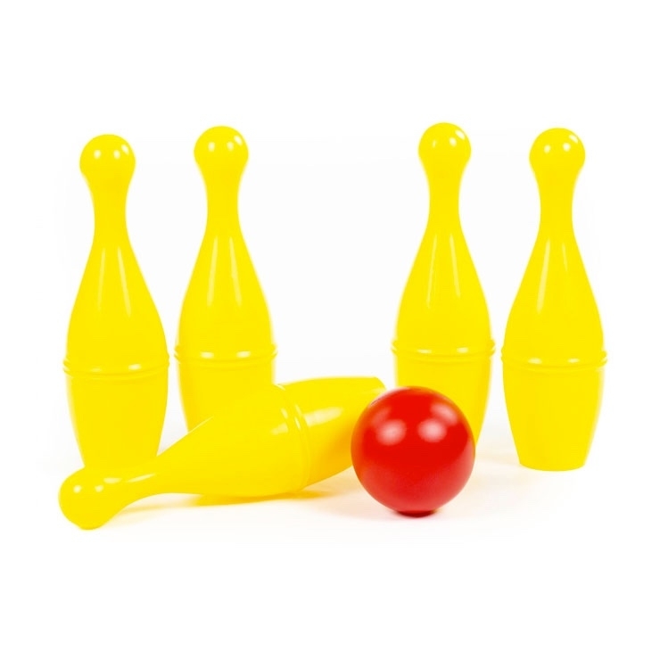 Kuželky Šampion, v balení je 5 ks plastových kuželek 25 cm velkých a koule, jsou od renomovaného výrobce Wader-Polesie Toys který je zárukou nejlepší evropské kvality.