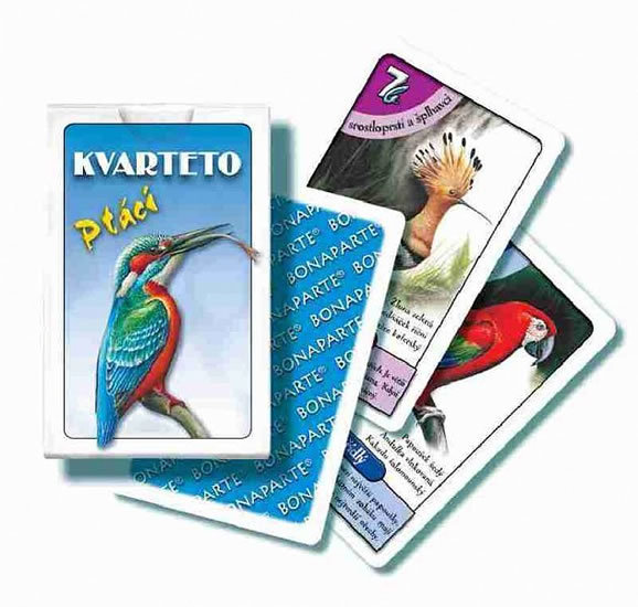 Oblíbená dětská hra kvarteto s obrázky ptáků. číst celé