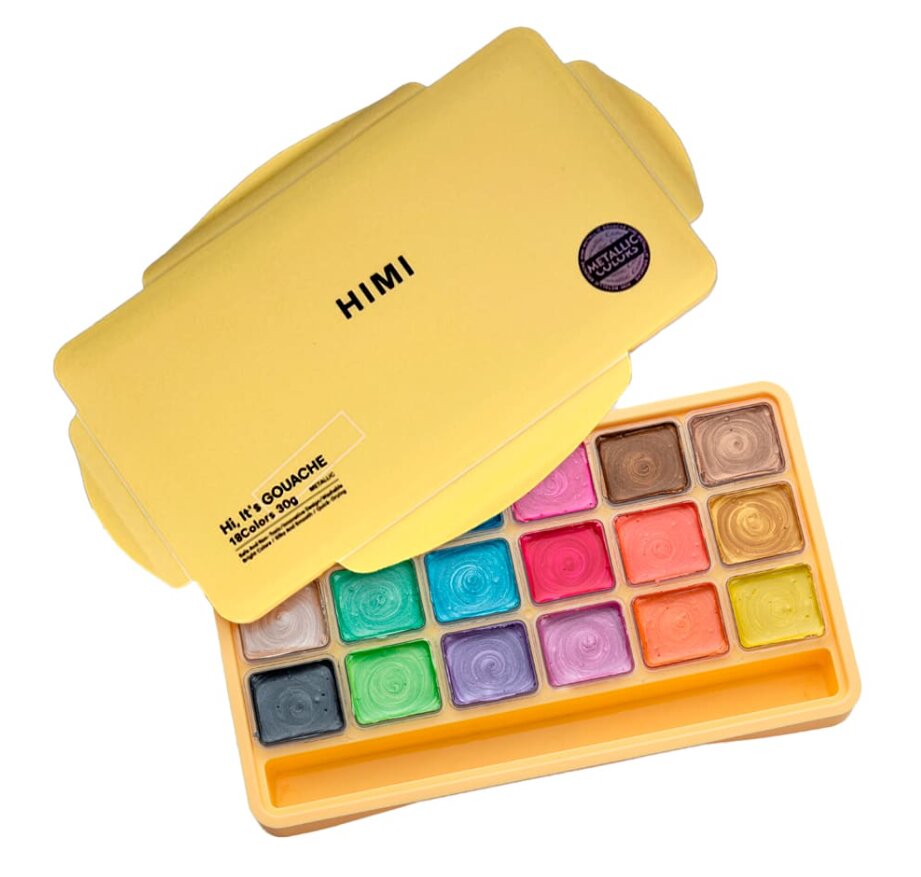 HIMI kvašové barvy - Jelly Cup Gouache Set - 18 Colours- Metallic Edition