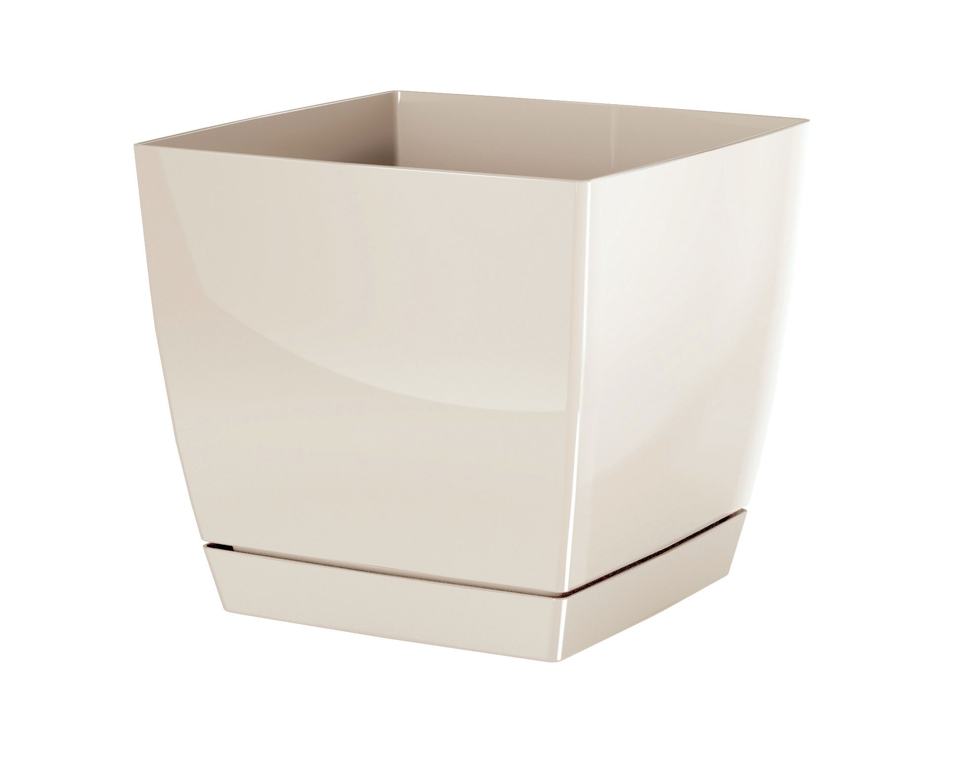 Květináč COUBI SQUARE P s miskou 21 cm - barva: krémová
