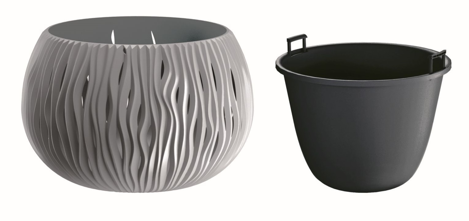 Květináč SANDY BOWL s vkladem 37 cm - barva: šedý kámen