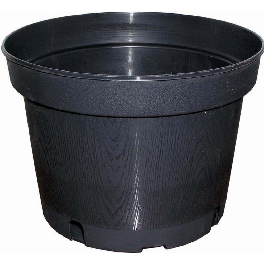 Plastový květináč kónického tvaru s horním rantlem. Prolisované a děrované dno.