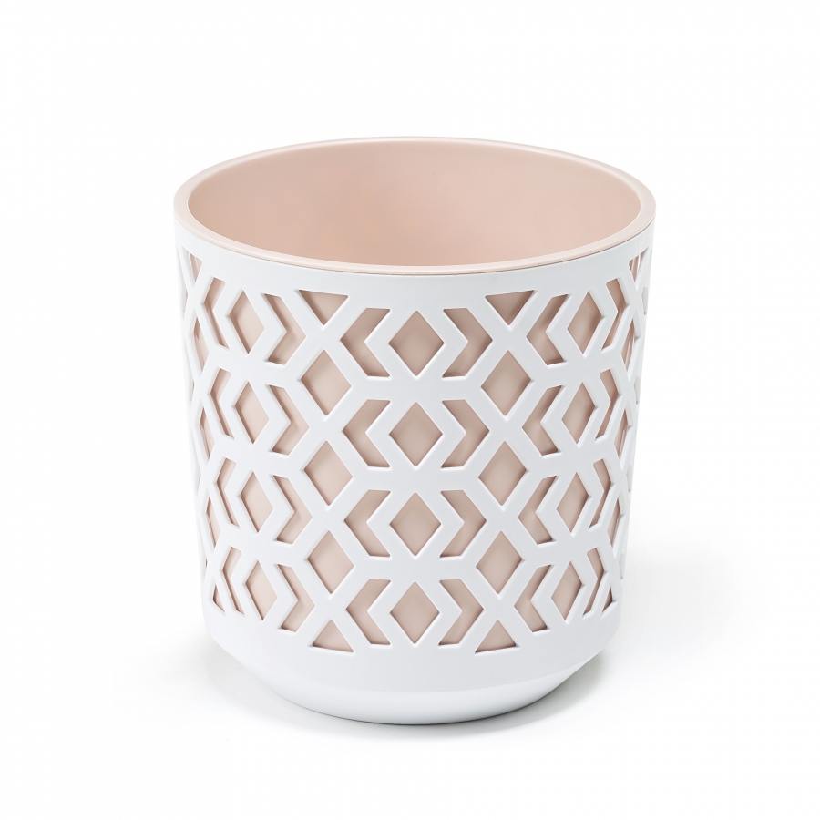 Moderní plastový květináč AZTEK se skládá ze dvou kusů v krásných kontrastních barvách, děrovaný květináč - obal(matný) a plný květináč(lesklý) - vklad. Květináč(vklad) má béžovou barvu, obal(děrovaný květináč) je v bílé barvě(krémovo/bílá). Barvy jsou odolné vůči UV záření. Květináč je vhodný jak do interiéru tak do exteriéru.