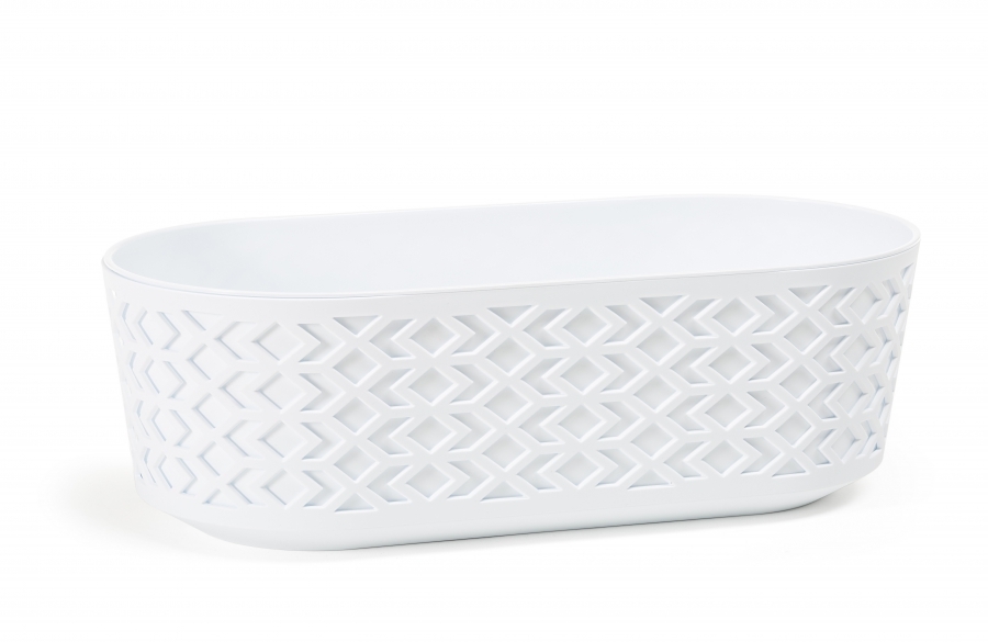 Truhlík (vklad) i obal (děrovaný květináč) mají bílou barvu. Truhlík je odolný vůči běžným škrábancům.