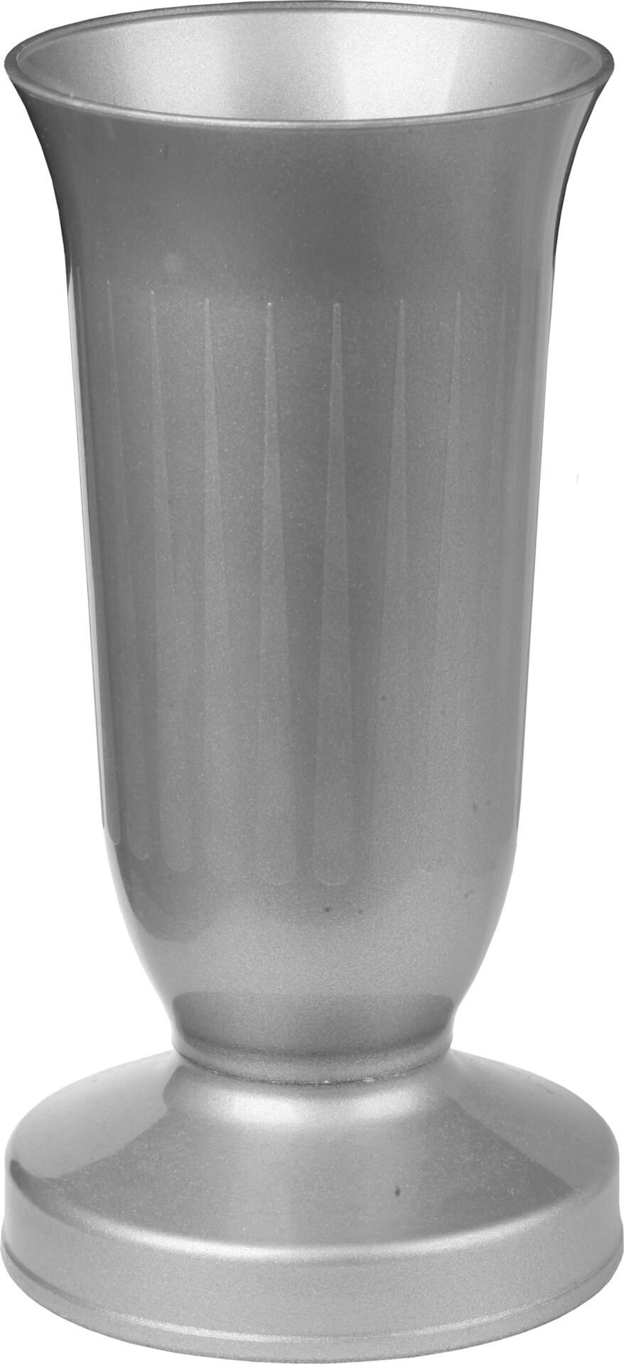 Popis:Plastová váza se zátěží v podstavci určená především na hřbitov, je stabilní ve větru a odolná mrazu.Materiál:plastBarva:stříbrnáRozměry:výška: 23,4 cmprůměr podstavce: 12 cmhorní průměr: 11,2 cmobjem: 0,95 l