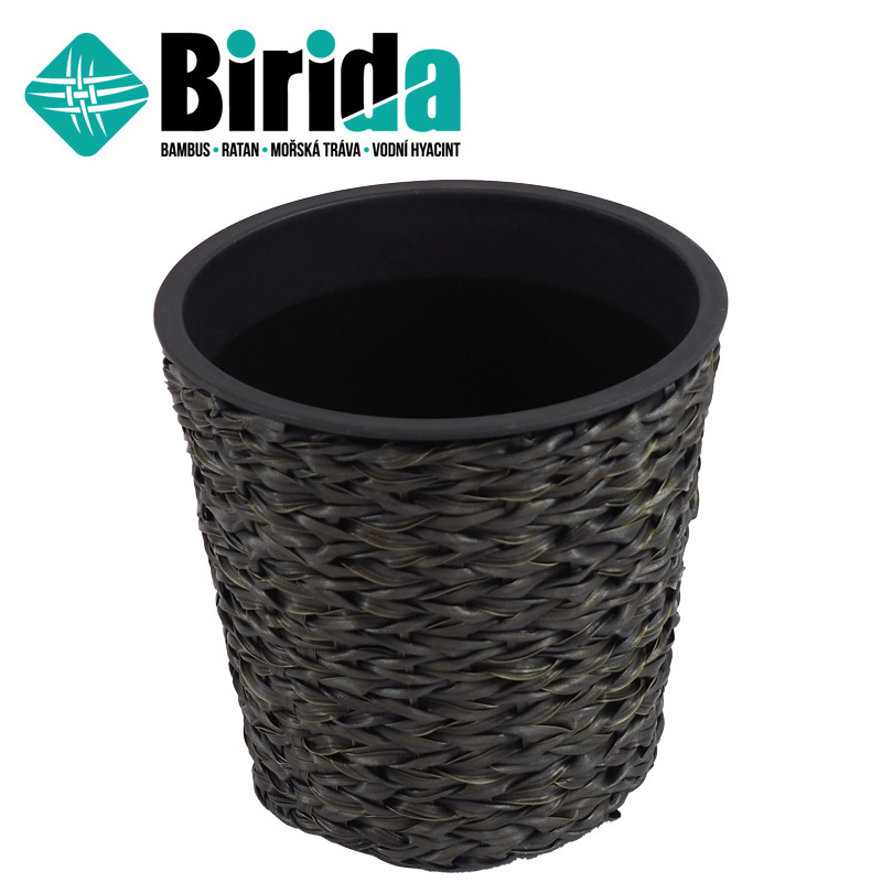 Plastový květináč oplétaný tmavým vodním hyacintem - typu plast. Kruhový průměr květináče, barva - tmavá, vnitřní plastový korpus - černý.Tato varianta květináčů je určena pro použití v interiéru i exteriéru (venkovní použití)!