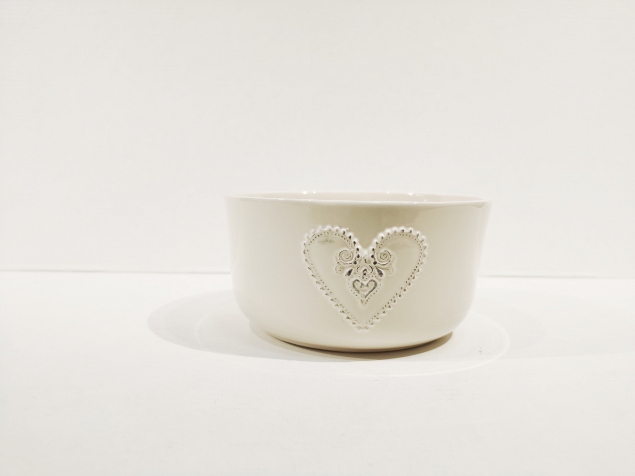 Keramická mísa se srdíčkem 9x18,2 cm, bílá