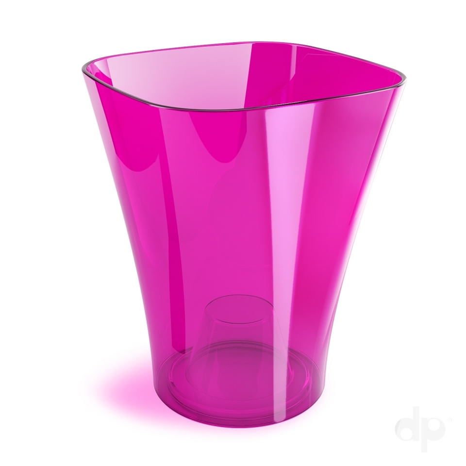 Plastový květináč na orchideje. Květináče mají vyvýšené dno pro snadný odtok přebytečné vody od kořínků rostlin. Květináč je růžový, ostatní fotografie jsou pouze ilustrační.