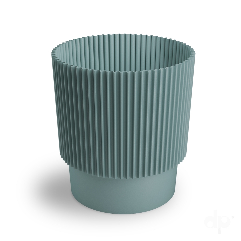 Plastový obal na květiny Elsa s moderními vroubky. Květináč je mátový, ostatní fotografie slouží pro znázornění samotného květináče.