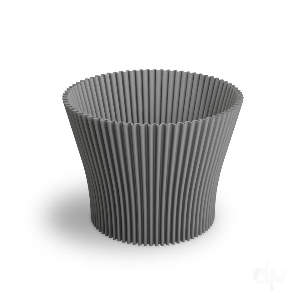 Plastový obal na květiny Lotus s moderními vroubky. Květináč je šedý, ostatní fotografie slouží pro znázornění samotného květináče.