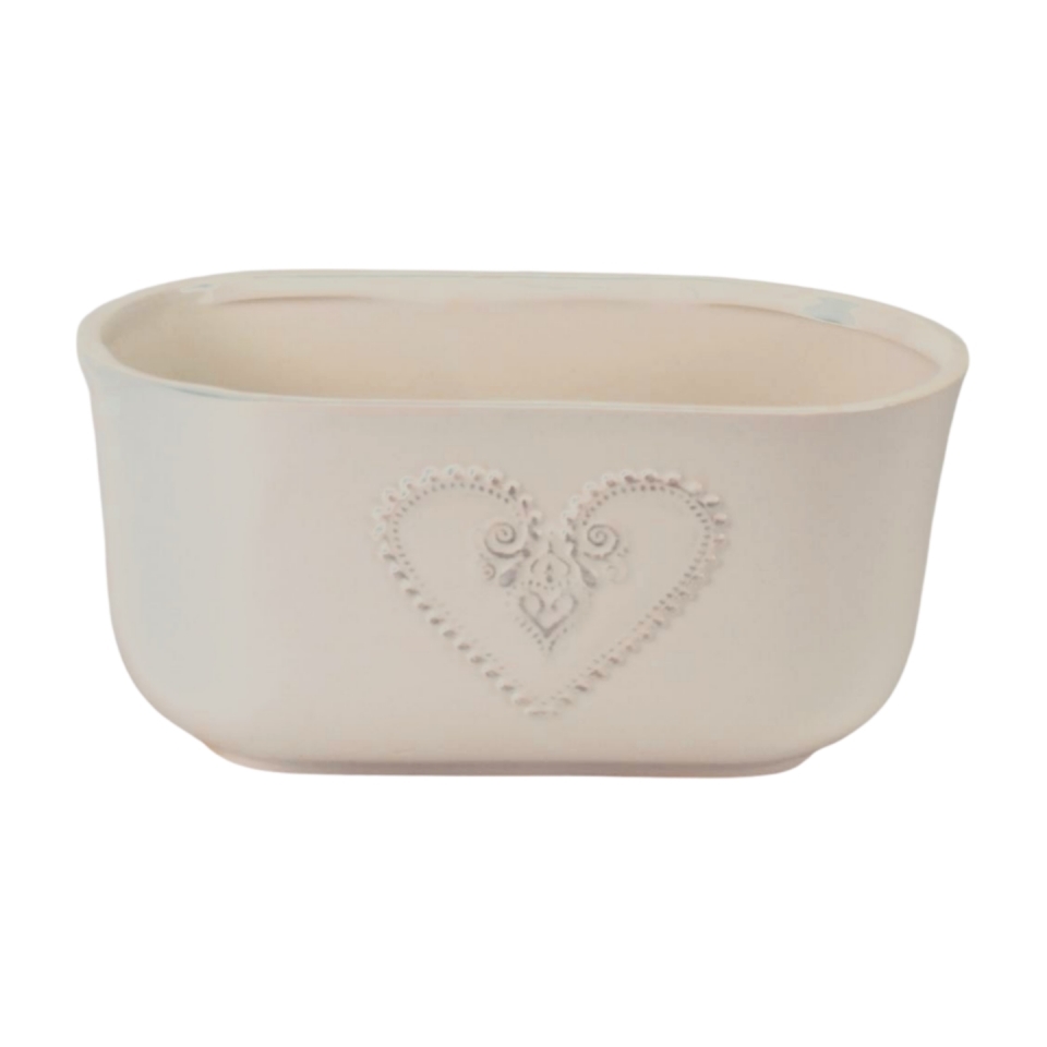 Bílý, keramický květináč se srdcem, ovál průměr 25 cm 2. jakost