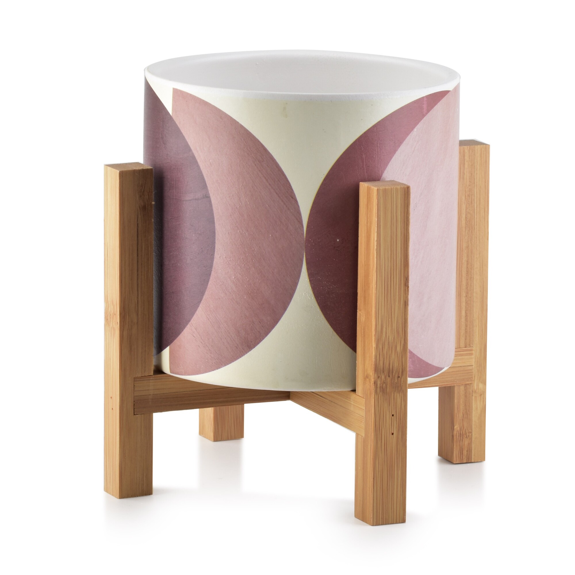 Keramický květináč na stojanu Ava s růžovými kruhy II