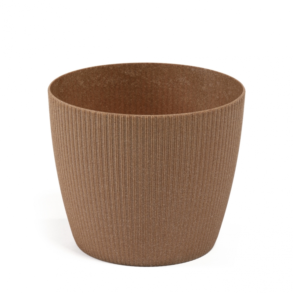 Plastový květináč Magnolia Jumper z vnější strany zdobený proužkem. Květináče jsou vhodné do interiérů i ven. Nová řada ECO květináčů je vyrobena z recyklovaného plastu s významnou příměsí dřeva. Každý květináč řady ECO obsahuje až 40% dřeva. Barva: přírodní dřevo Rozměr: výška 12,9 cm průměr 15,7 cm objem 1,9 l