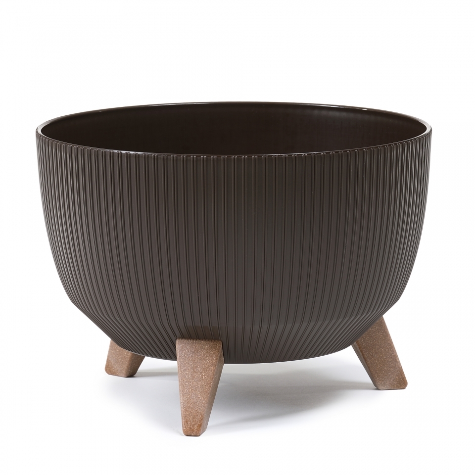 Mezi designové kousky se může zařadit plastová mísa Roma jumper, matná s proužkem, na nožkách . Mísa Roma jumper je originální výrobek, který vynikne na poličce, komodě, ale i na zemi. Tuto mísu není možné přehlédnout! Nožky jsou vyrobené z ECO materiálu a napodobují dřevo. Součástí mísy jsou: 3 nožky z eco materiálu, černý plastový sklad a gumový špunt pro odtok přebytečné vody. Materiál: plast Barva: mocca Rozměry: výška 20,5 cm výška včetně nožiček 25,5 cm průměr 39,9 cm objem 21 l