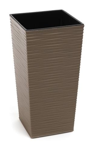 Obal květináče FINEZIA VRUB ve frappe barvě je velice efektní, je opatřen vyjímatelnou vložkou, kterou osadíte a nemusíte tak plnit substrátem celou nádobu květináče. Pro zatížení obalu proti převrhnutí ho můžete v dolní části zatížit kameny, vodou, ... Vyjímat se bude skvěle v interiéru, ale i na terase či zahradě. Plastový materiál, hranatý tvar. Rozměry 19 x 19 a výška 36 cm. EAN 5900119845880