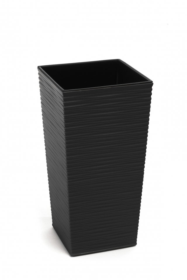 Vysoký plastový květináč Finezie vroubek s matným povrchem. Součástí květináče je vyjímatelná plastová vložka černé barvy (viz. fotka pod textem) s uchy pro snadnou manipulaci. Do plastové vložky se rostliny zasadí a plastová vložka se vloží do vnějšího květináče. Květináče jsou v hodné do interiéru a také ven. Barva: černá Rozměr: výška 57 cm šířka 30 cm délka 30 cm