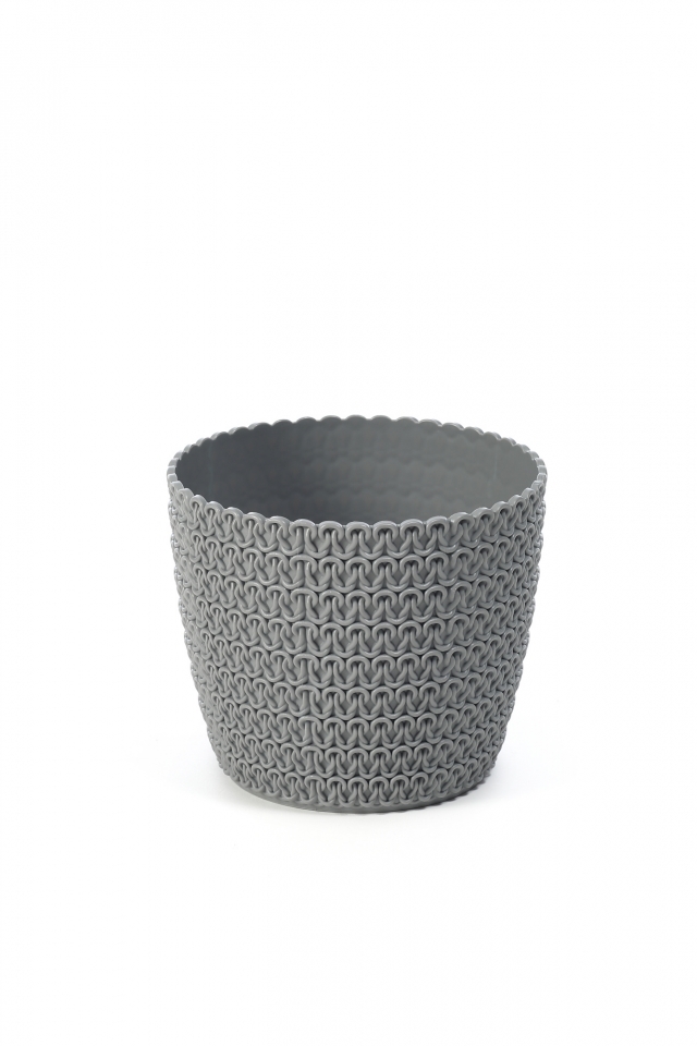 Plastový květináč Magnolia Jersey z vnější strany zdobený pleteným dekorem. Květináče jsou vhodné do interiérů i ven. Barva: šedá Rozměr: výška 22 cm průměr 26 cm číst celé