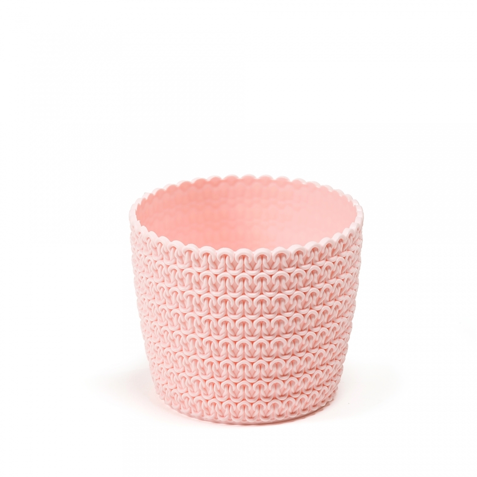 Plastový květináč Magnolia Jersey z vnější strany zdobený pleteným dekorem. Květináče jsou vhodné do interiérů i ven. Barva: pudrová Rozměr: výška 14 cm průměr 16 cm číst celé