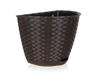 Nástěnný půlkulatý květináč v hnědé barvě je zajímavý svým moderním designem, proto se hodí na terasy, balkony, ale lze jej použít i uvnitř domu. Mísa květináče má dno opatřené plastovým výstupkem (zásobníkem vody), který slouží pro samozavlažování květin. Rozměry: 30 x 20 x 22 cm, objem 5 litrů.