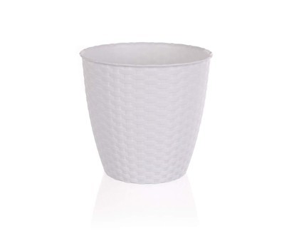 Květník RATTAN Natura Line - bílé barvy je zajímavý svým moderním designem. Hodí se na terasy, balkony, zahrady, ale lze ho použít i v domácnosti. Rozměr: výška 22,2 cm, průměr 24 cm, objem 6,2 l. Tyto květníky je možno prezentovat také v paletovém displeji, který pojme 64 ks od 1 barvy, v mixu 30 ks 14 cm / 13 ks 19 cm / 11 ks 24 cm / 10 ks 29 cm květníků.