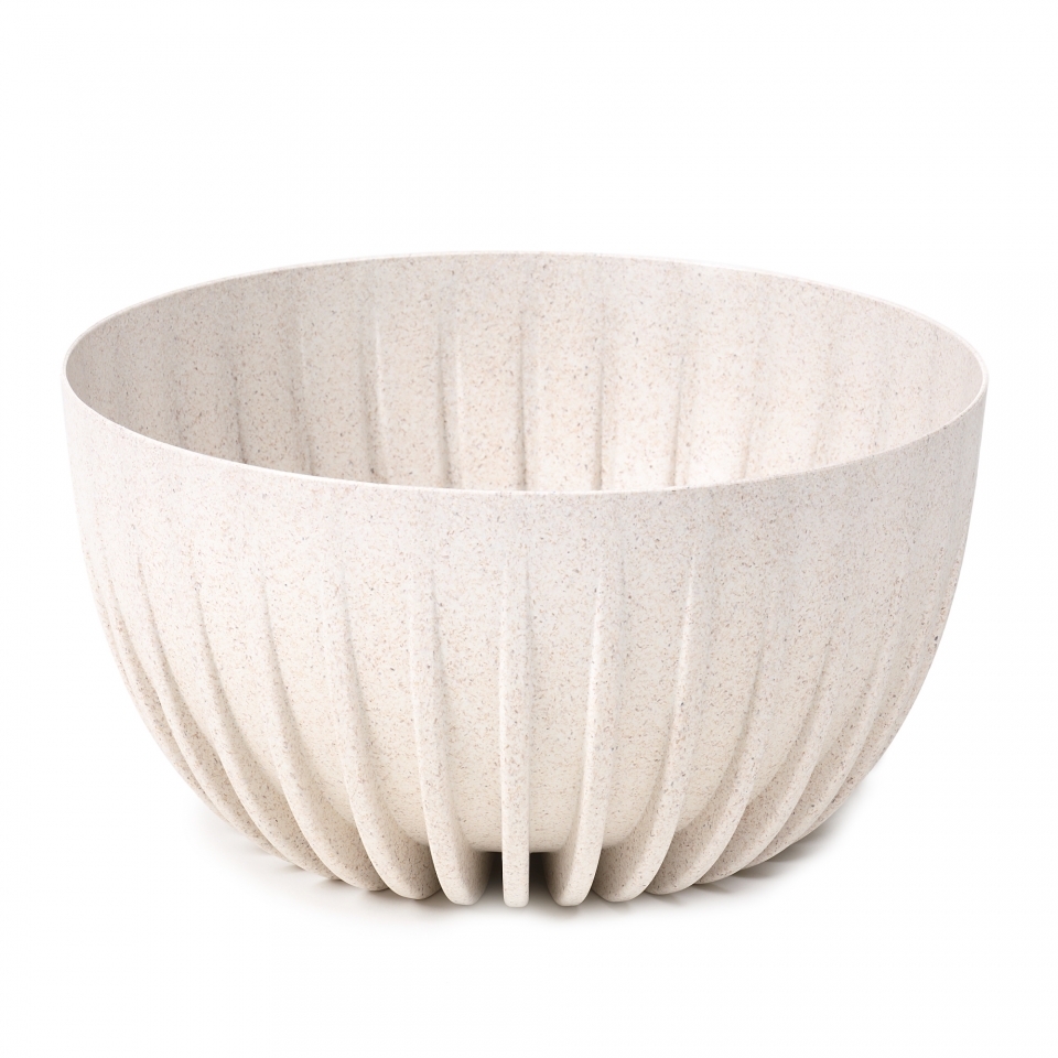 Plastová mísa z kolekce Mira eco wood. Moderní květináč s žebrováním. Součástí mísy je černý plastový vklad sloužící k odtoku přebytečné vody pod tento vklad. Nová řada ECO wood květináčů je vyrobena z plastu s významnou příměsí dřeva. Každý květináč řady ECO wood obsahuje až 40% dřeva. Květnáče jsou vhodné přímo k výsadbě rostlin nebo poslouží jako obal pro květinu s květináčem. Materiál: plast s příměsí dřeva Barva: bílo-béžová Rozměry: výška 14 cm průměr 23,6 cm objem 3,6 l