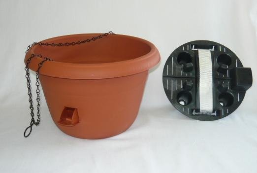 Popis: Žardina s profesionálním zavlažovacím systémem (včetně kovového řetízku na zavěšení). Materiál: plast Barva: teracotová Rozměry: průměr: 30 cm výška: 19 cm