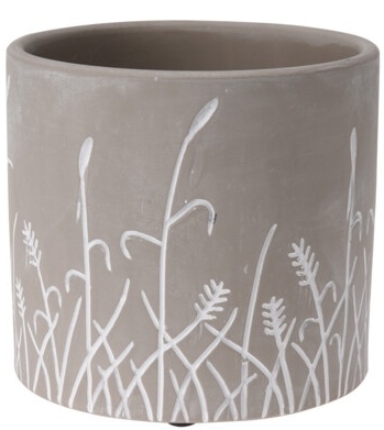 Taupe keramický květináč s bílým květnovým motivem. Povrchová úprava matná. Květináč bude krásnou ozdobou vašim květinám a zajímavým dekoračním prvkem interiéru.