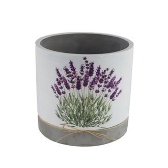 Obal na květiny je kulatého tvaru s jemným motivem levandule, který evokuje klid a pohodu. Díky kombinaci barev - bílé, šedé, fialové a zelené - dokonale ladí s různými typy interiérů i venkovních prostor. Jeho rozměry, průměr 17 cm a výška 16 cm, umožňují pohodlné umístění květin různých velikostí a typů. Materiál cement zajišťuje vysokou odolnost a stabilitu, což znamená, že obal vydrží i náročnější podmínky a dlouhodobé využití.