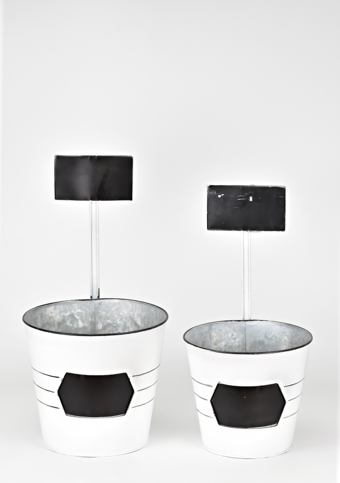 Plechový květináč s popisovací cedulkou, sada 2 ks