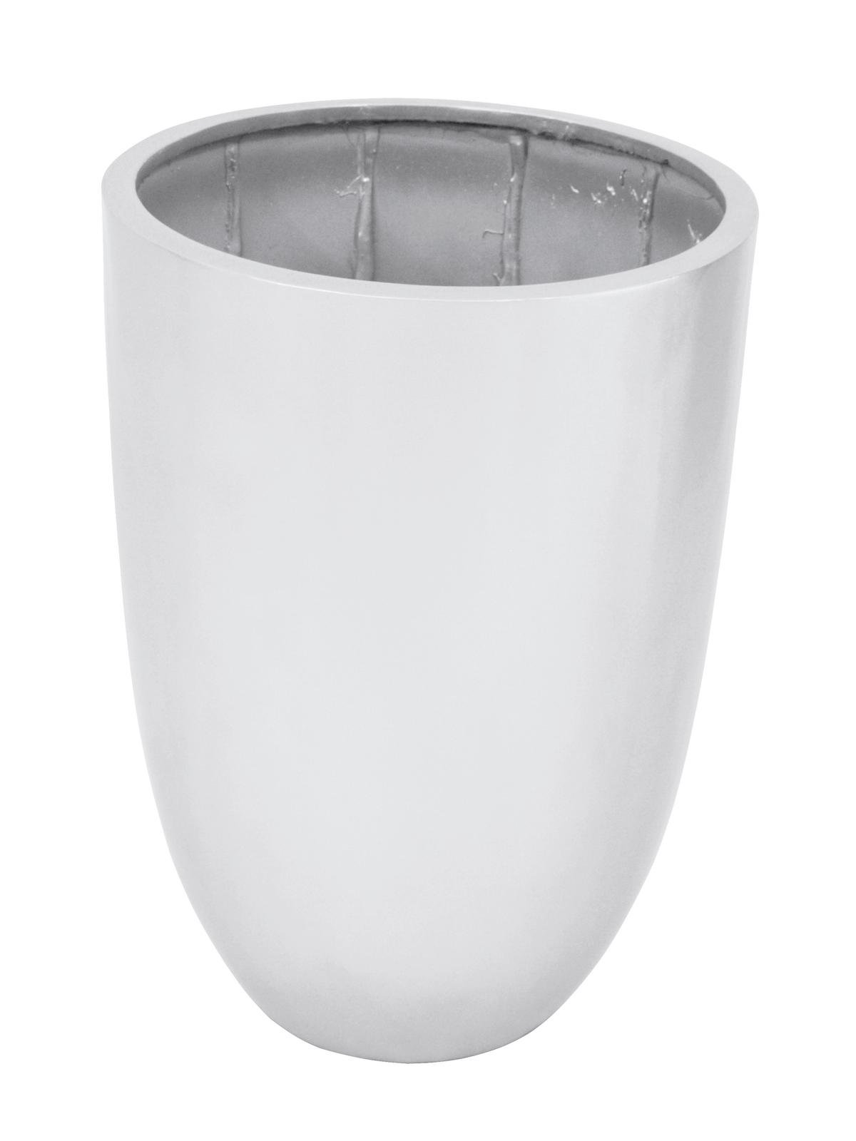 Sofistikovaný design lehkého a zároveň robustního květináče. Materiál hliník-laminát s 3 mm širokou stěnou. Elegantní stříbrná barva ve vysokém lesku. Květináč je kruhového tvaru, šířka horní hrany cca 2,5 cm, průměr 47 cm, výška květináče 69 cm a hmotnost 4,75 kg. Upozornění: Květináč je pouze dekorativní a je určený pro aranžmá umělých rostlin. Pro použití s živými květinami zasazenými v hlíně je nutné vložit samostatný voděodolný květináč. Není určeno pro venkovní použití.