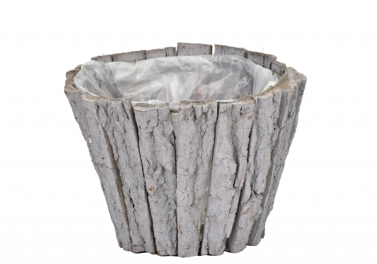 Květináč z kůry světle šedý 14x19 cm