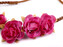 Čelenka s květy růží vypadá skvěle v rozpuštěných i zapletených vlasech. Využijí ji i dívky, které čeká První svaté přijímání, neměla by chybět v účesu žádné družičky. Na spleteném copánku z eko kůže jsou připevněné textilní květy. Zadní část tvoří pružná guma. Čelenka pevně drží a nepadá, je velice příjemná na nošení.